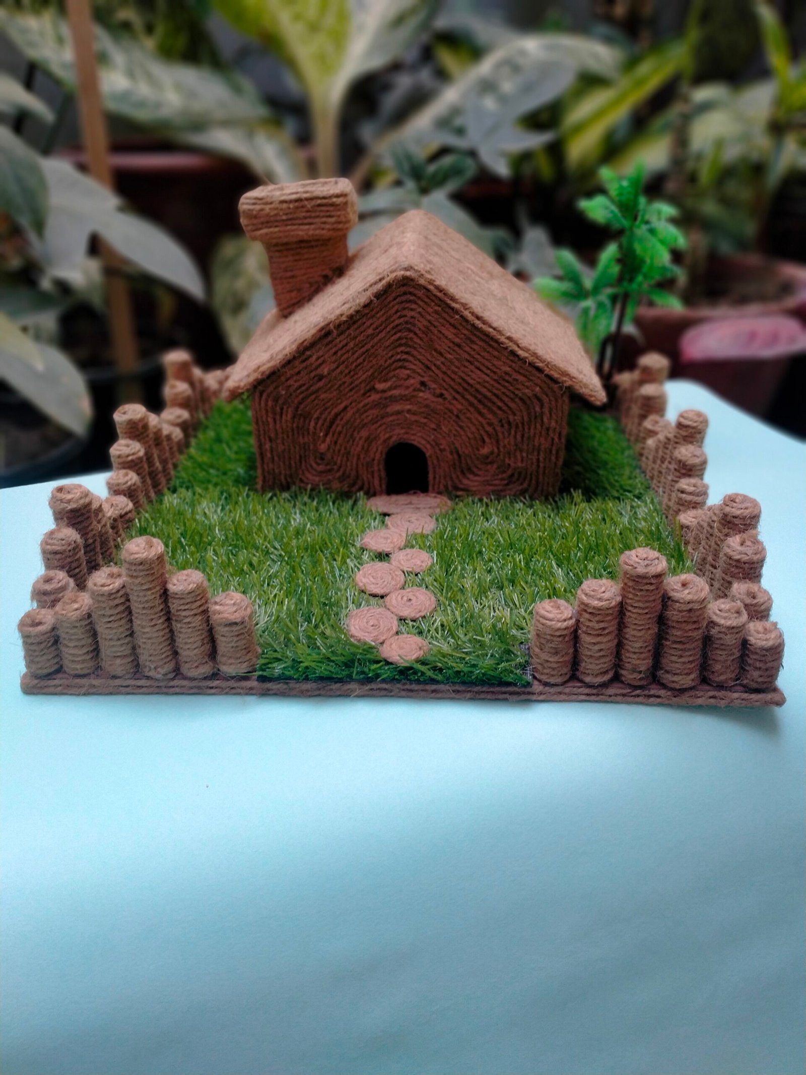 Perfect for living rooms, showcases, study tables, or as a thoughtful handmade gift, this miniature jute house reflects creativity and elegance. Each piece is handcrafted with care, making it unique and one-of-a-kind.